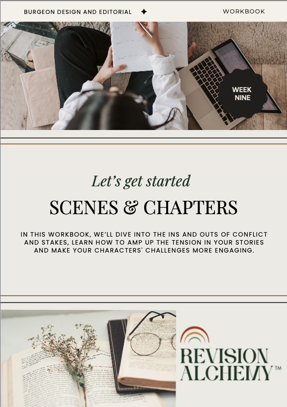Because you attended Golden May’s workshop, you’re getting a sneak peek at something special: a workbook from Revision Alchemy, my signature editing course that’s about to launch its newest iteration. This excerpt—focused on scenes and chapters—is one of my favorite parts of the course. It dives deep into conflict, tension, and stakes, helping you sharpen your storytelling where it matters most. I’m thrilled to share this with you, and I hope it supports your revision journey with clarity, momentum, and a renewed sense of creative power.