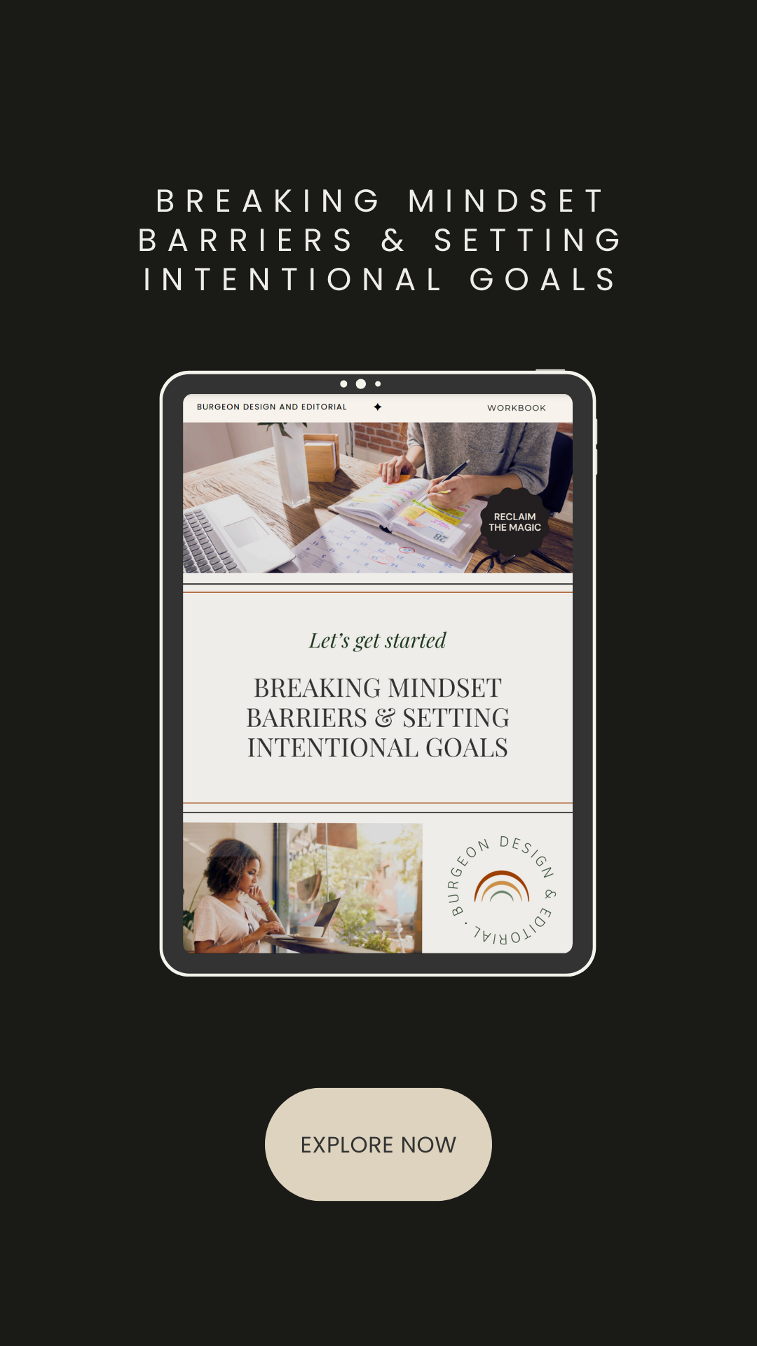 Because you attended Golden May’s workshop, you now have exclusive access to content inside our January Goal Setting Workshop in The Residency, our online writing community here at Burgeon! I’ve compiled our talk into a special workbook just for you, and I’m so excited for you to dive in. Let’s build momentum and set the stage for a year filled with clarity, purpose, and creative growth!